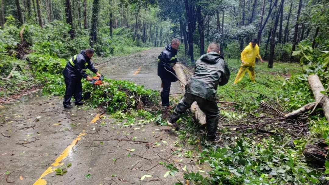 9月5日至6日,保安队成员们积极深入辖区内工棚等重点区域和生产队排查山体滑坡等地质灾害情况,确保了职工群众生命财产安全。台风期间,该队伍冒着风雨到生产队周边流域进行巡逻,及时提醒居民远离涉水区域,并分成几个小组在各涉水路段进行值守,全力保障职工群众生命安全。台风过境后,该队伍又第一时间投身于灾后自救工作中,不畏风雨和困难险阻,扛着电锯、拿着砍刀对分公司各生产队主要道路进行路障和倒树清理,畅通生命和生产通道。