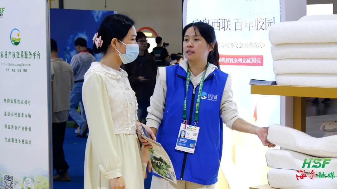 “天然环保的乳胶枕头很柔软舒服,您可以躺下来体验一下。”海南橡胶展区的工作人员向过往的市民和客商热情推介产品,今年海南橡胶共携20余种天然乳胶产品到现场参展,针对不同的人群及需求,有针对性地设计推出了女士枕、儿童枕等绿色环保产品。